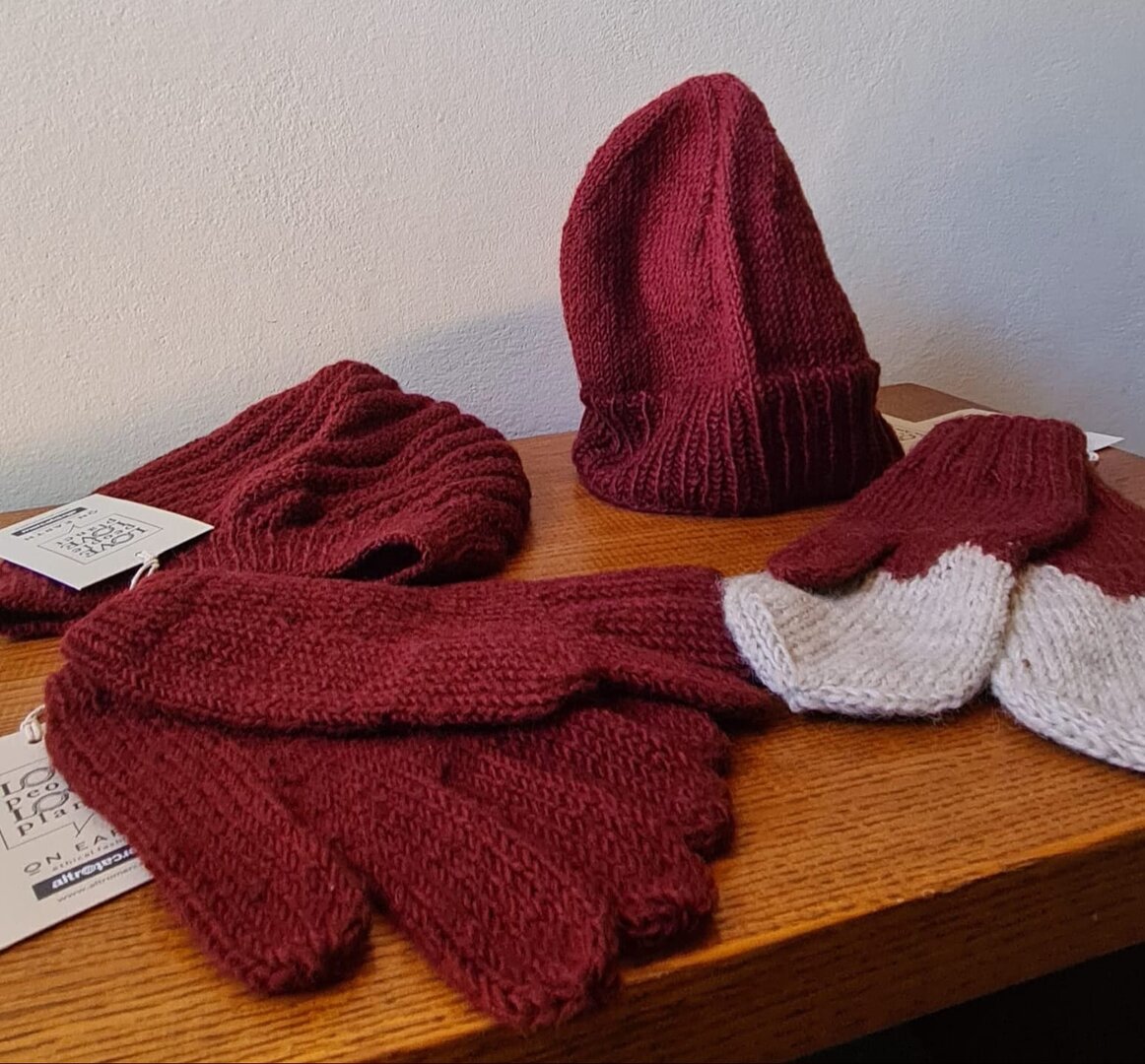 La linea invernale di cappelli, guanti e fasce in pura lana è prodotta in India da CRC, un'organizzazione che lavora stabilmente con 26 gruppi di artigiani mantenendo con loro un rapporto di collaborazione plurivalente fornendo formazione nell'ambito produttivo, sostenendo gli investimenti per migliorare l'attività e l'ambiente lavorativo e, mettendo in contatto tra di loro i vari artigiani, permette la realizzazione di prodotti coinvolgendo i diversi gruppi con differenti competenze. (Importati da Altraqualità di Ferrara)