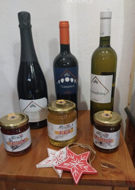 In Bottega potete trovare il vino e il miele.