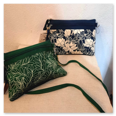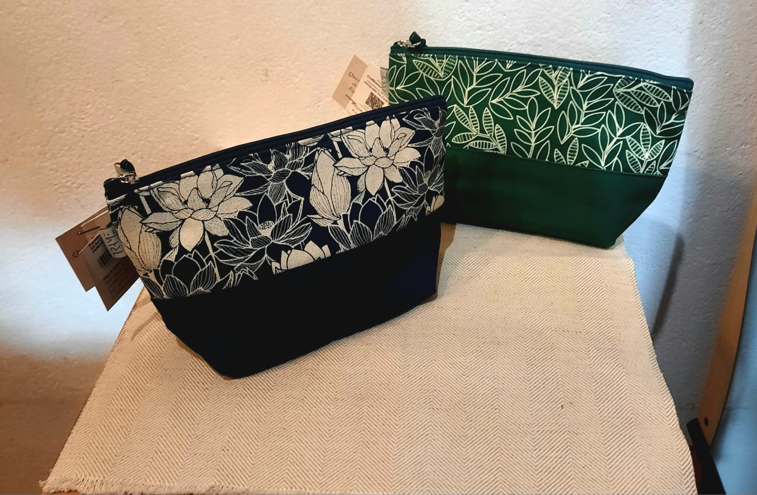 Linea Batik bianco e blu: portamonete, portaocchiali, portadocumenti, trousse, borsa a tracolla con bottone. Tutti prodotti in puro cotone importati dalla Thailandia