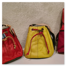 Pezzi unici nati dagli scarti dell'industria indiana del pellame. L'uso di tecniche tradizionali unite alla manualità e fantasia degli artigiani fanno di queste borse prodotti unici e irripetibili.